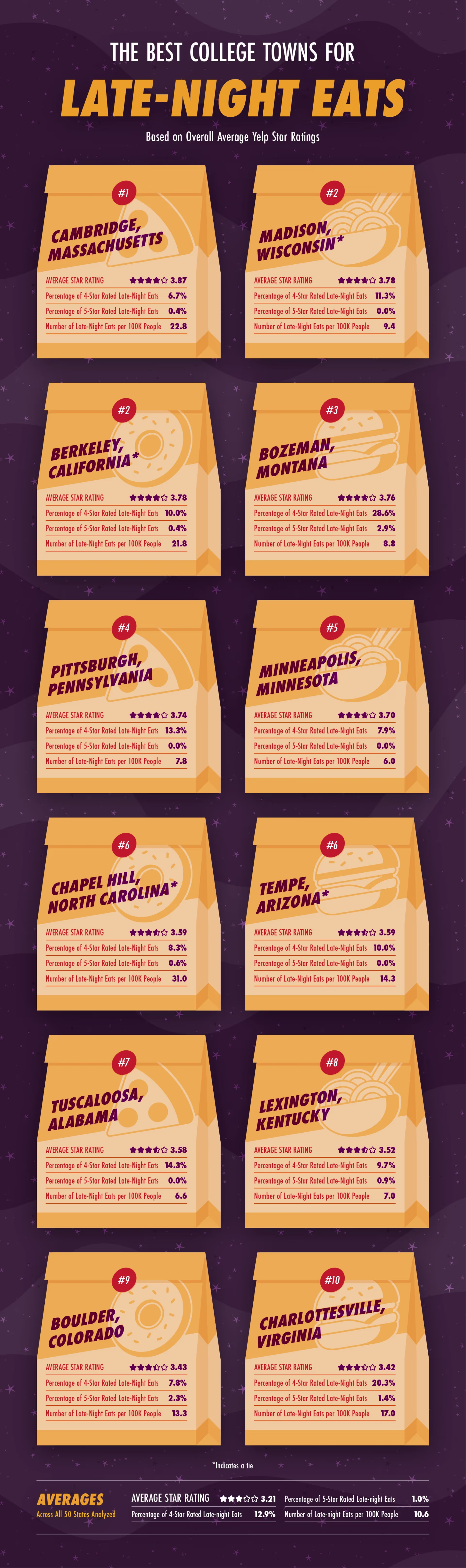 Key Findings for College Towns With the Best Late-Night Eats